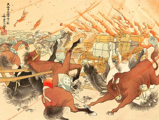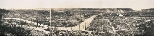 Şiddetli rüzgarların etkisiyle devrilen ocaklardan ve patlayan gaz şebekesinden çıkan yangınlar yayıldı. Çok geçmeden tüm şehir alevler içinde kaldı.