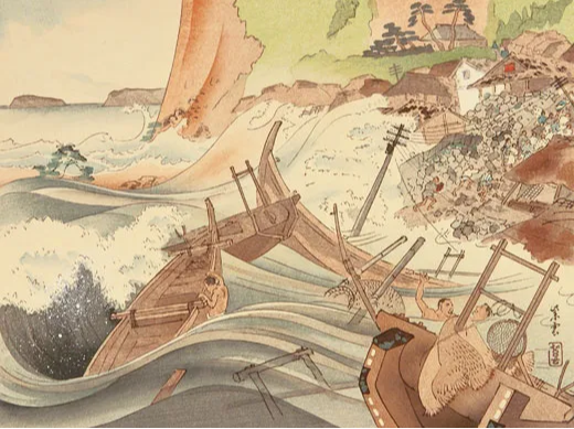 Trans-Pacific dergisinin Tokyo merkezli editörü Henry W. Kinney, "Gelgit dalgası, sahile yakın köyün büyük bir bölümünü süpürdü" diye yazdı . “Yıkılmış bir evin çatısının üzerine düzgünce kaldırılmış, on metrelik bir sampan [tekne] gördüm.