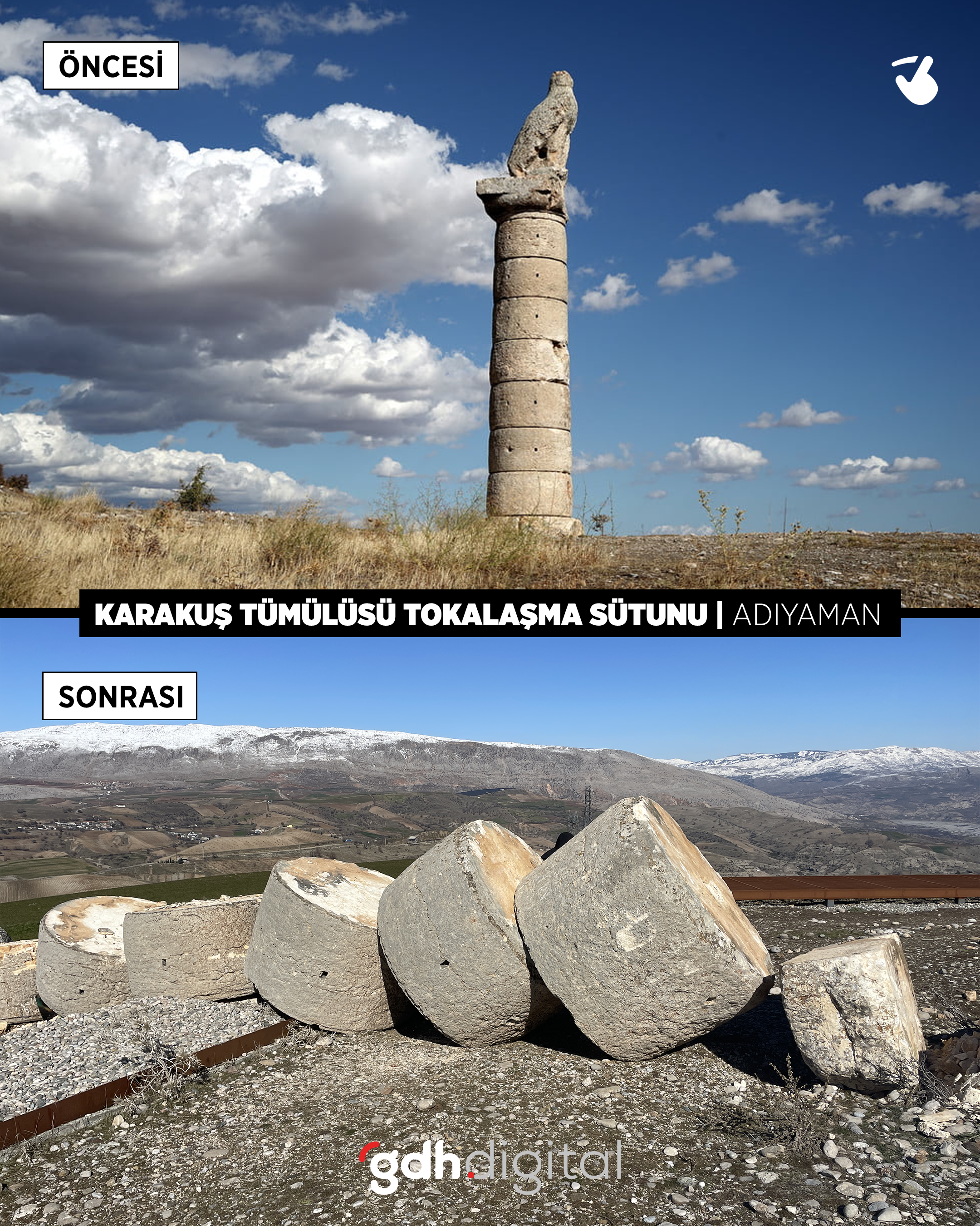 Adıyaman'ın Kâhta ilçesindeki Çukurtaş köyü yakınlarında, MÖ 30-20 yıllarında Kommagene Kralı II. Mithridates tarafından yaptırılan Kraliçe İsias ve Kommagene Prensesleri Antiochis ve I. Sütun 2023 Türkiye-Suriye depreminde çöktü.