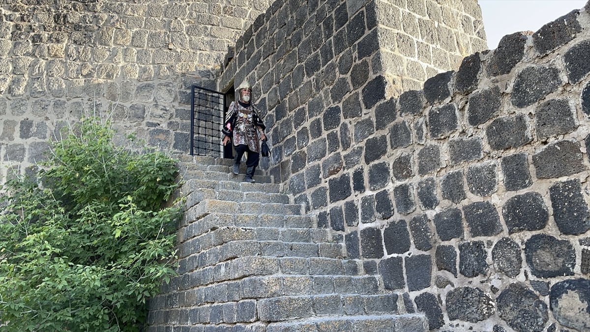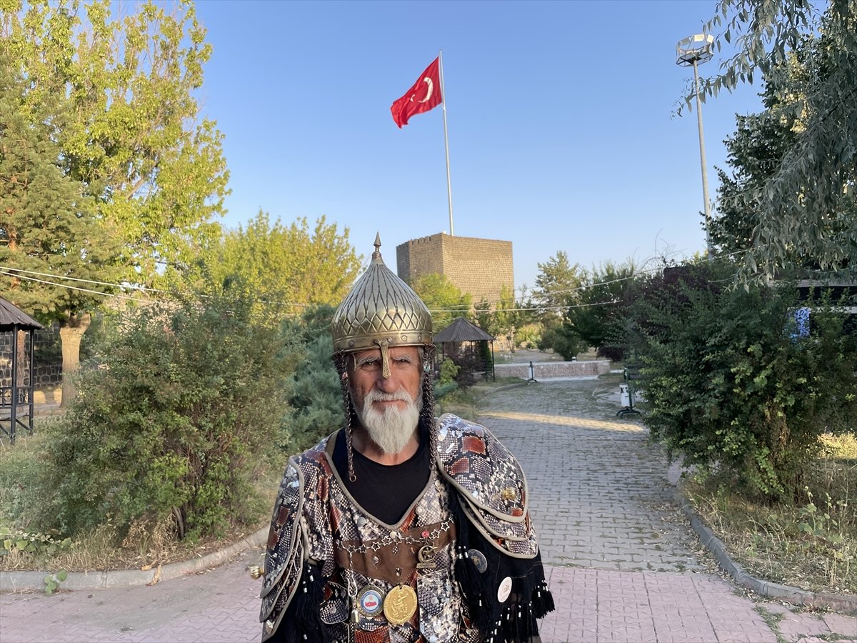 Denizli'den Muş'un Malazgirt ilçesine gelen 71 yaşındaki Hasan Keskin, özel olarak yaptırdığı temsili Alparslan kostümüyle ilgi odağı oldu.