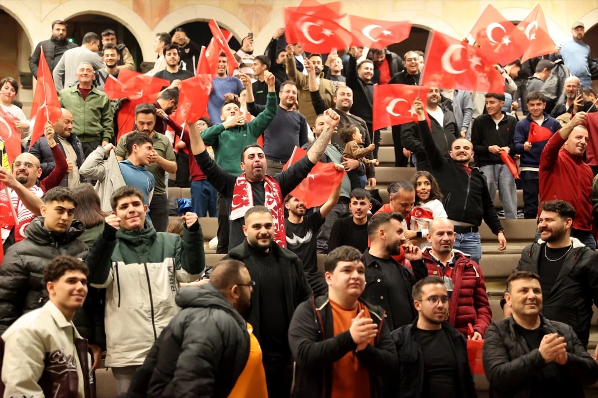 Ellerinde Türk bayraklarıyla sevinç çığlıkları atan ve marşlar söyleyen coşkulu taraftarlar, milli takımın Dünya Kupası vizesi almasını büyük bir gururla kutladı.