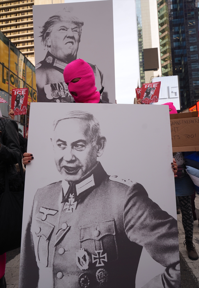 Göstericiler, ellerinde taşıdıkları pankartlarla ABD Başkanı Donald Trump’ın çocuk istismarı ve fuhuş ağı kurmaktan hüküm giyen ve cezaevindeyken şüpheli biçimde ölen Jeffrey Epstein ile ilişkisine de dikkat çekti.