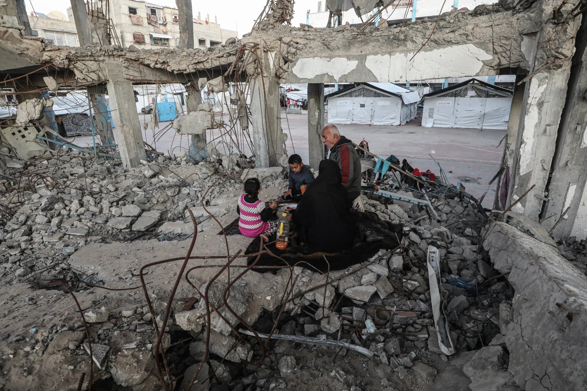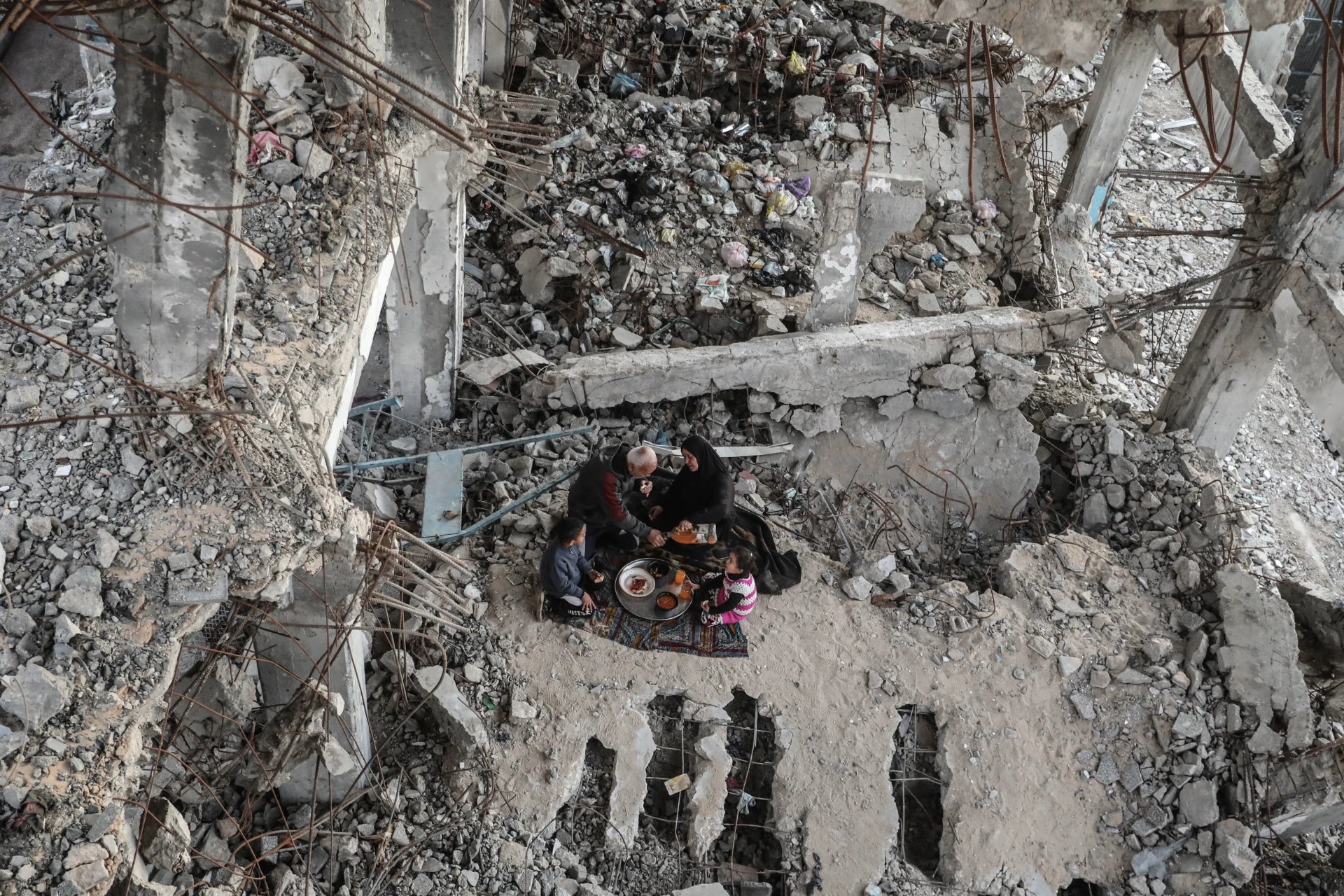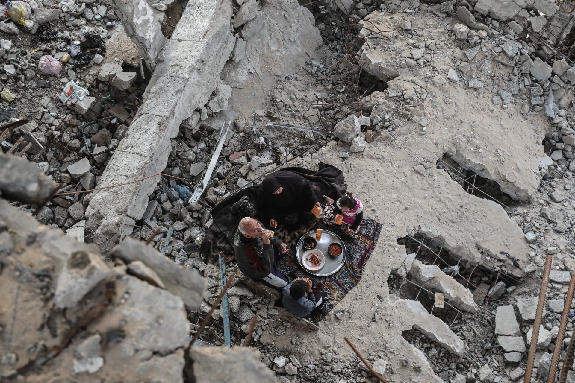 Bombardıman sonucu eğitim yuvasıyken enkaza dönen binada oruçlarını açan aile, tüm dünyaya sessiz bir direniş mesajı verdi.