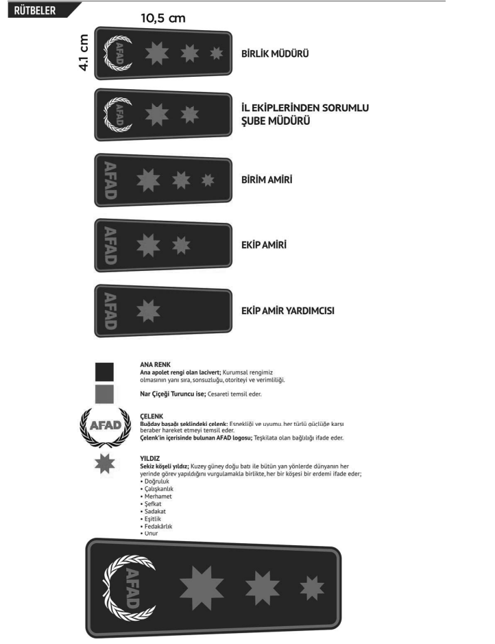 - Yeni yönetmelik, il afet ve acil durum müdürlüklerindeki yönetici ve arama kurtarma personelinin kıyafet ve rütbe işaretlerini düzenliyor.