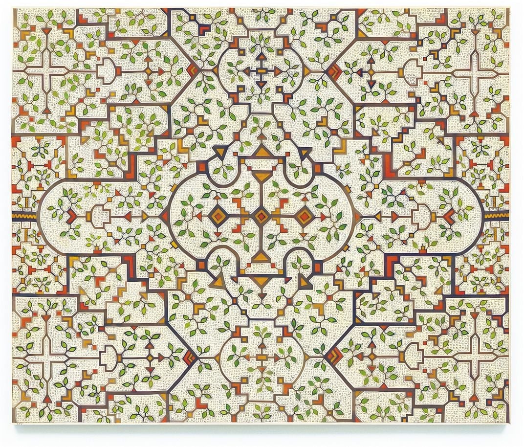 Sara Flores, Fittonia albivenis adlı bir bitkinin damarlarında yer alan desenlerden ilham alıyor. Shipibo-Conibo halkı bu bitkiye “ipo kené” adını veriyor ve kalıpları doğa ile ruhsal dünyanın bağı olarak görüyor.