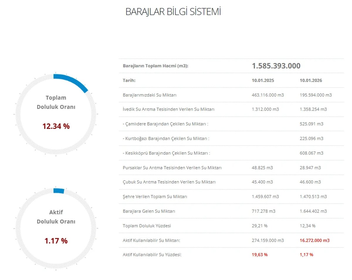 Ankara baraj doluluk oranları 12 Ocak | ASKİ ile Ankara barajları doluluk oranları ne kadar, yüzde kaç?