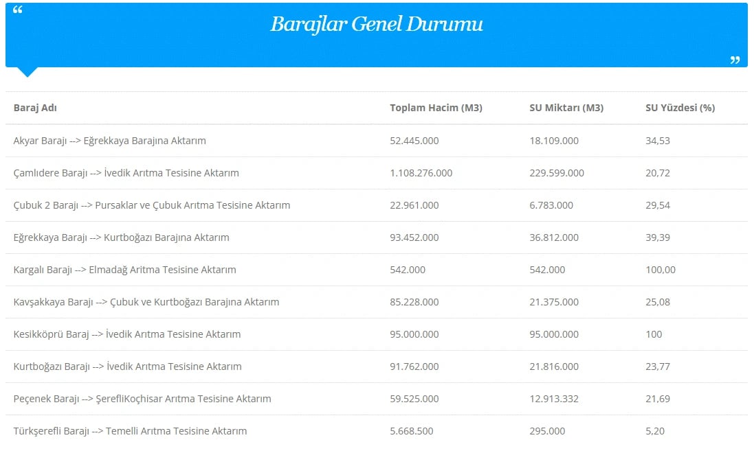 Ankara baraj doluluk oranları | ASKİ ile Ankara baraj doluluk oranları nasıl, arttı mı, düştü mü?