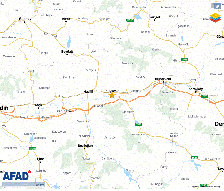 Son dakika Kandilli Rasathanesi son depremler listesi verilerine göre Aydın Kuyucak'ta 3.3 şiddetinde bir deprem meydana geldi.