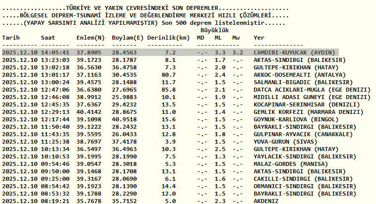 Aydın depremle sallandı! 10 Aralık AFAD ve Kandilli Rasathanesi son depremler listesi