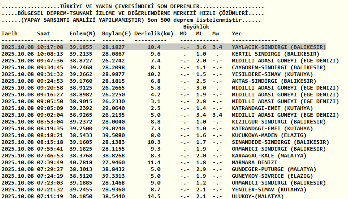 Balıkesir deprem mi oldu? 8 Ekim AFAD ve Kandilli Rasathanesi son depremler listesi