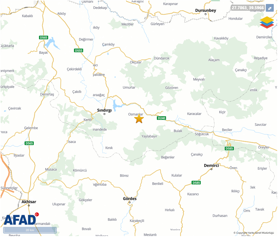 Balıkesir depreminin merkez üssü aşağıdaki haritada işaretli bölge olarak açıklandı.