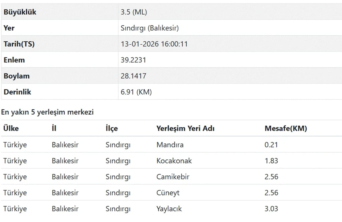 Balıkesir deprem haberleri son dakika olarak duyurulmaya devam ediliyor. Bölgede 13 Ocak günü hissedilen sarsıntı sonrasından detaylar merak edilerek son dakika Balıkesir'de deprem mi oldu? soruları yoğun olarak araştırılıyor.