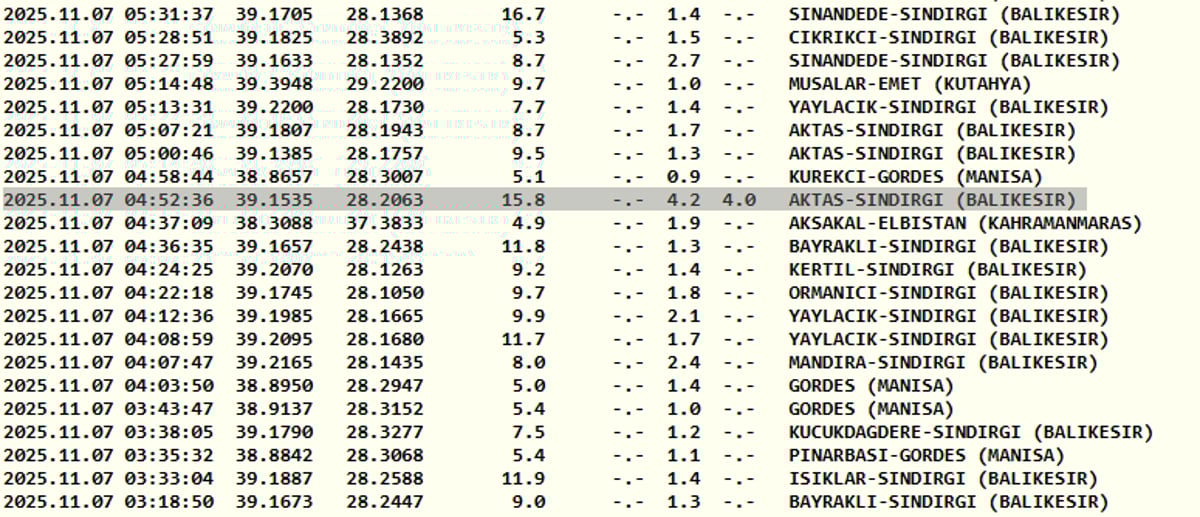 Balıkesir depremle sallandı! 7 Kasım AFAD ve Kandilli Rasathanesi son depremler listesi