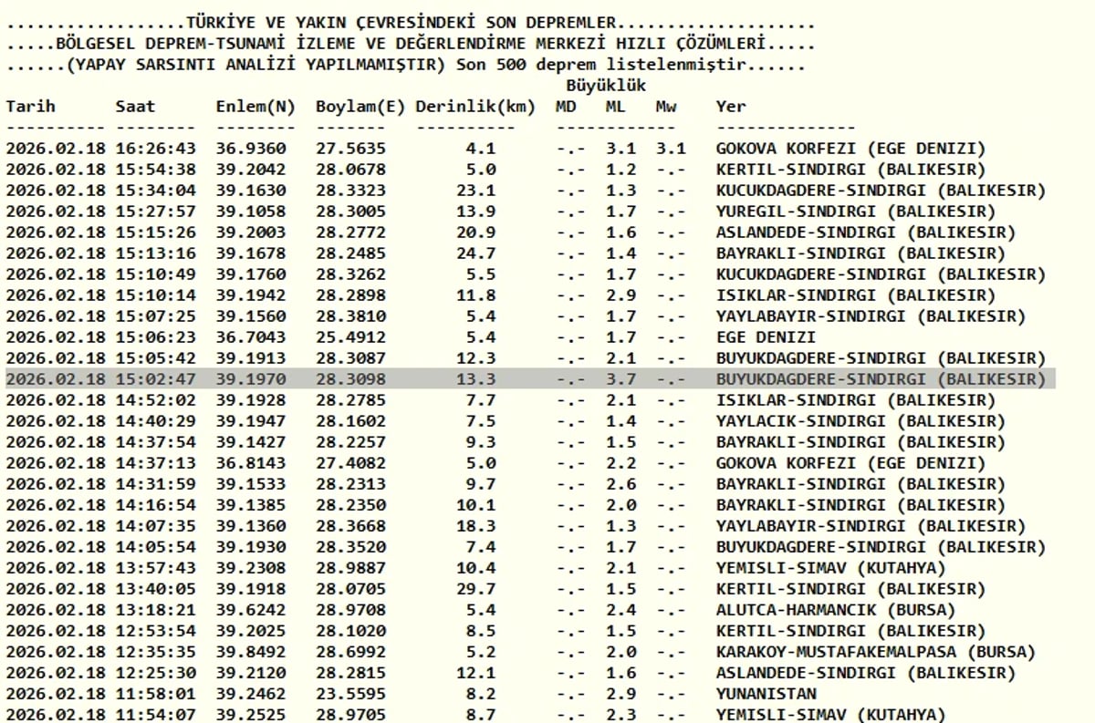 AFAD ve Kandilli Rasathanesi son depremler listesi | 18 Şubat deprem mi oldu, nerede, kaç şiddetinde?