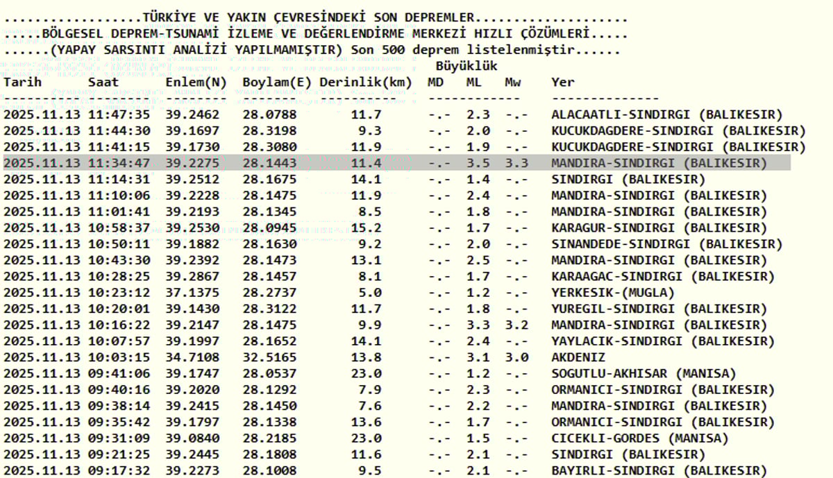 Balıkesir depremle sarsıldı | 13 Kasım AFAD ve Kandilli Rasathanesi son depremler listesi