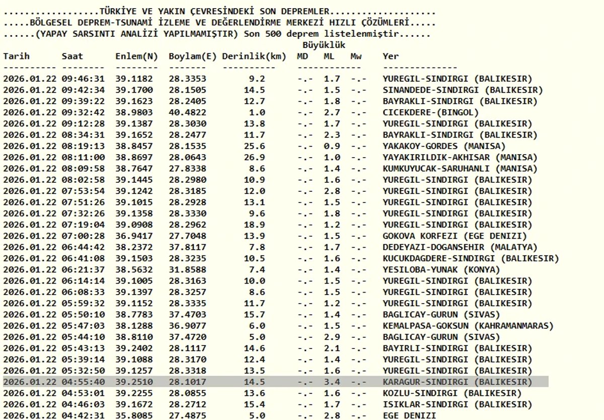Balıkesir'de deprem mi oldu? 22 Ocak AFAD ve Kandilli Rasathanesi son depremler listesi