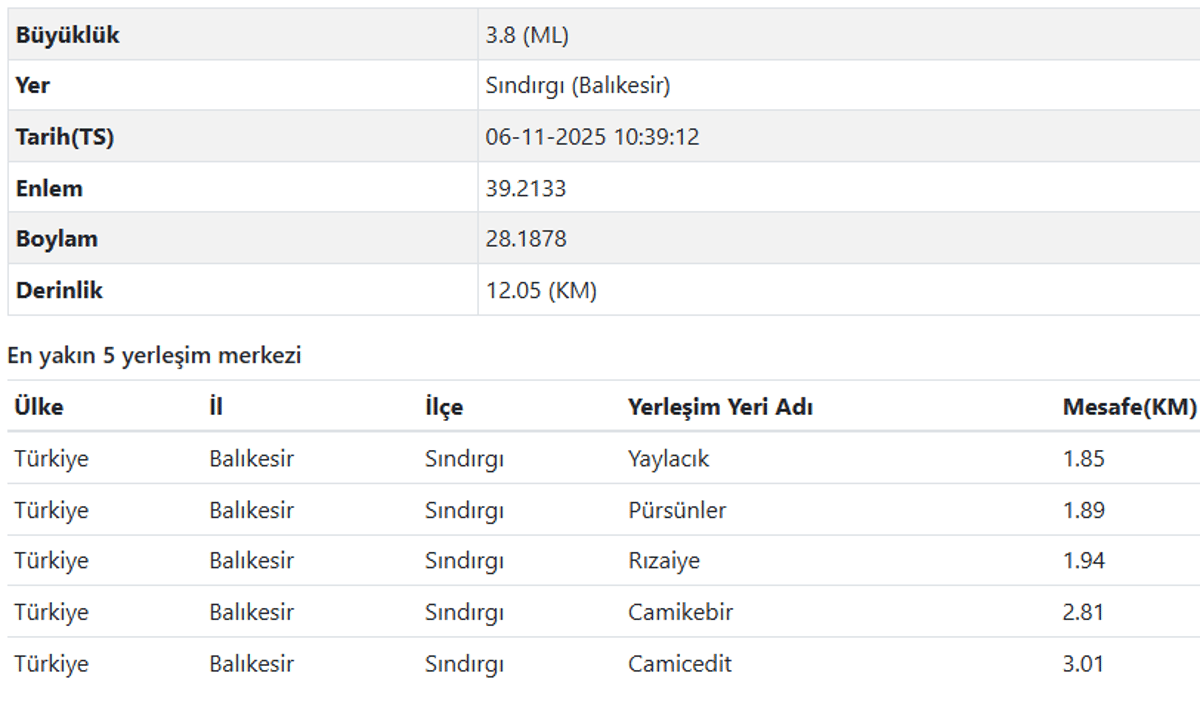 Son dakika Balıkesir deprem bilgileri ve tüm detaylar şöyle;