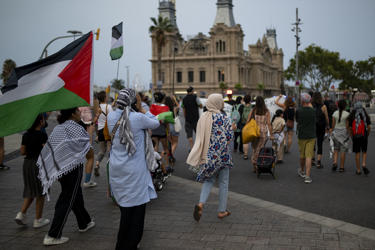 İspanya'nın Barselona kentinde halk, İsrail'in Gazze'ye düzenlediği saldırıları protesto etti.