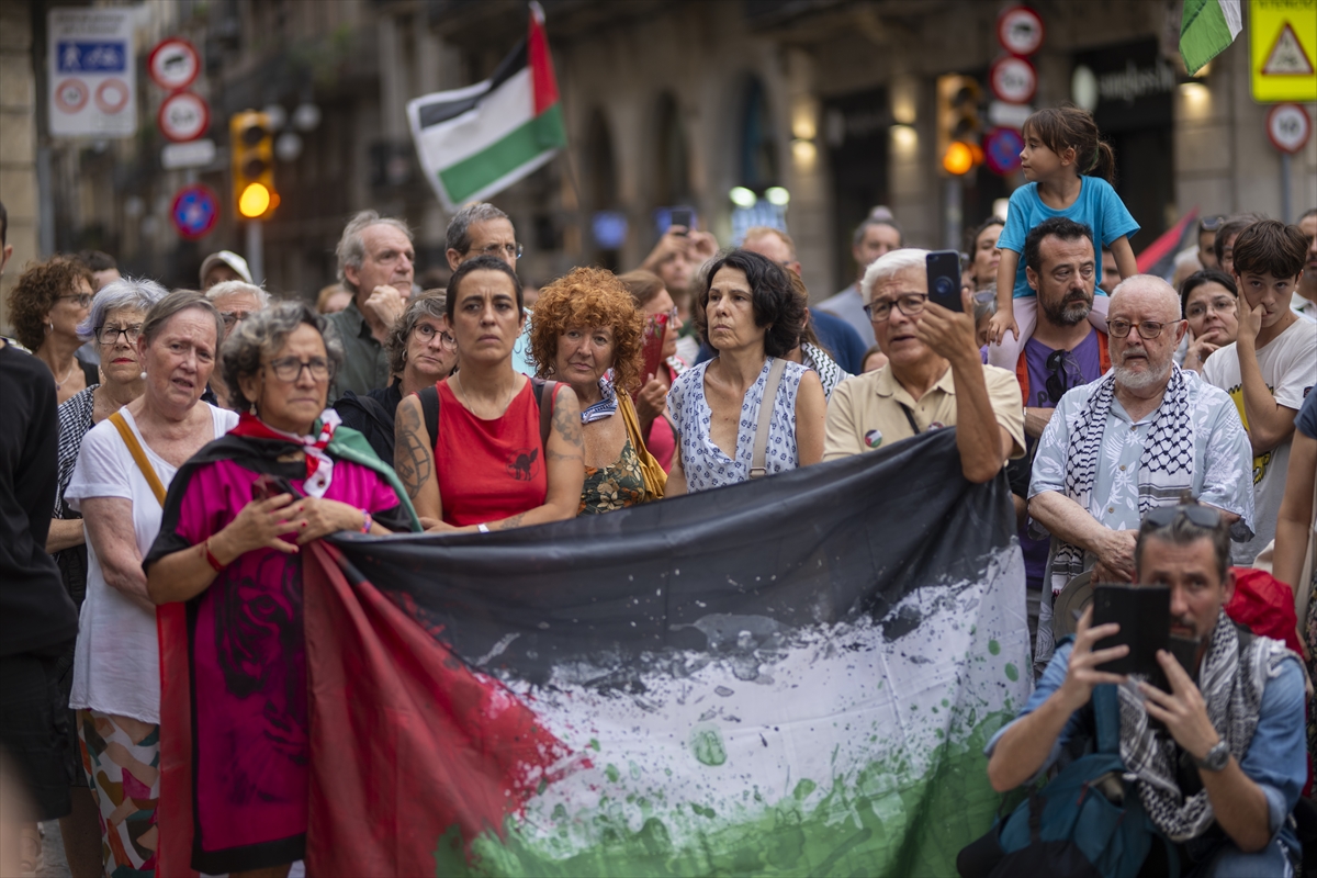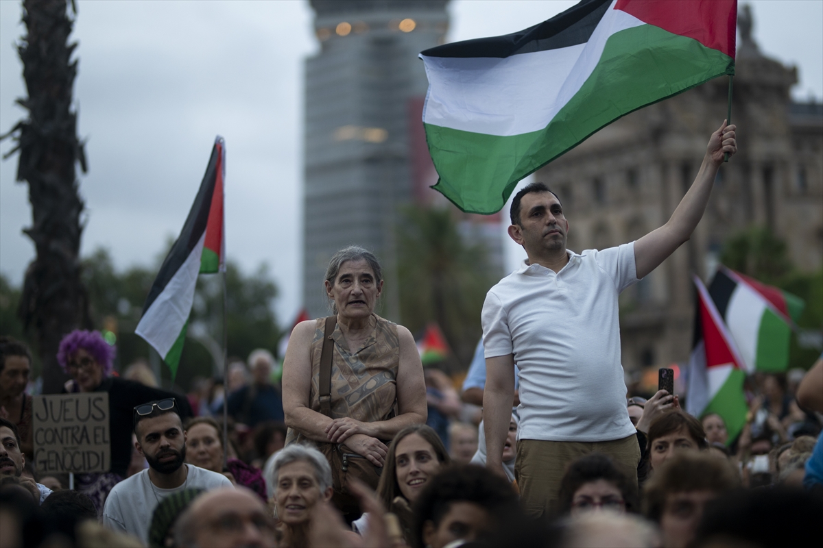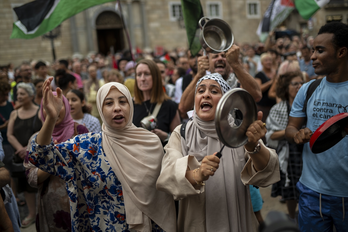 "Placa de Sant Jaume" meydanında toplanan halk, “Soykırımı durdurun” sloganları atarak Gazze için ateşkes çağrısı yaptı.