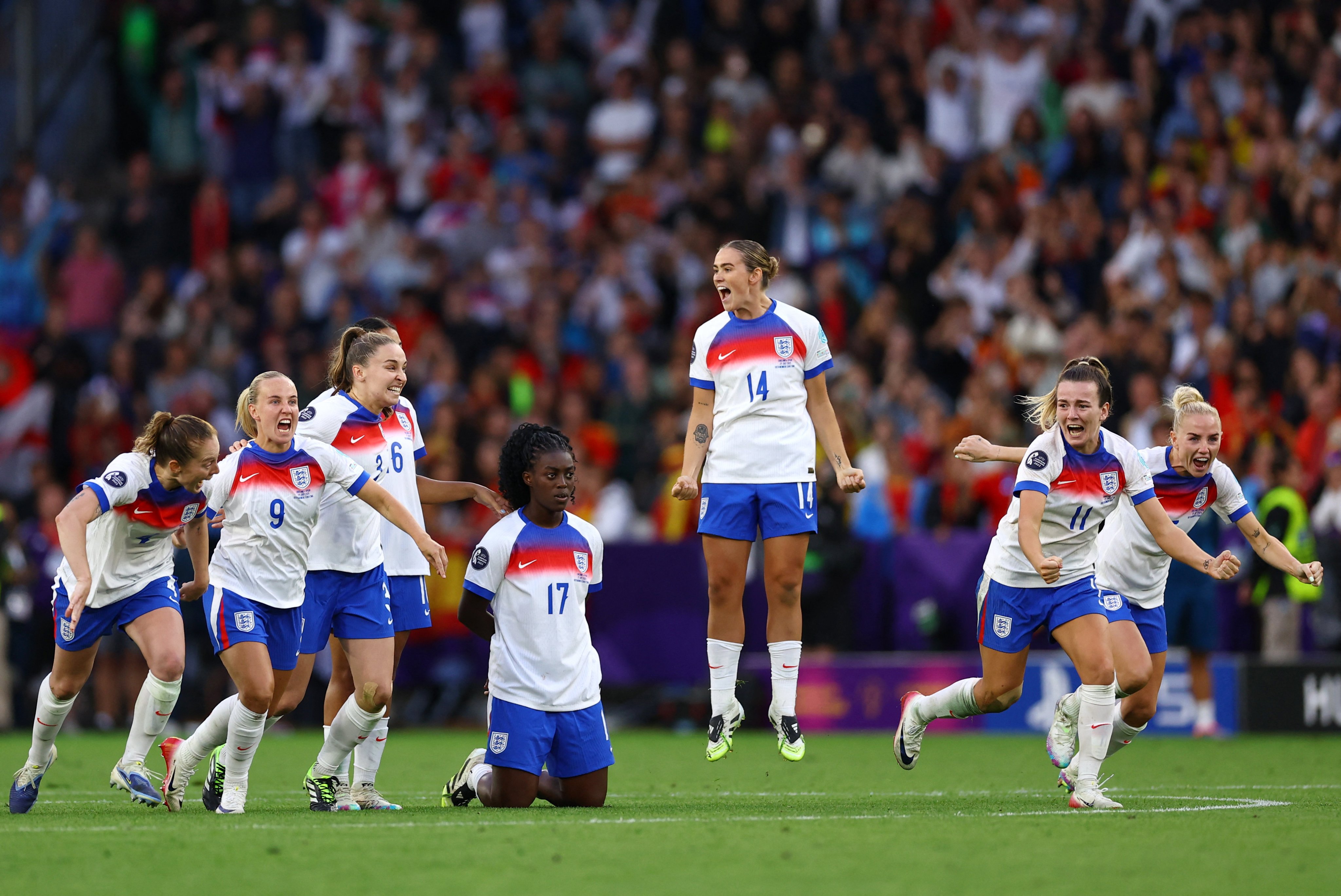 Karşılaşmanın 90 dakikalık normal süresi 1-1 eşitlikle tamamlandı ve şampiyonu belirlemek için uzatma dakikalarına geçildi. Ancak bu bölümde de gol sesi çıkmayınca, finalin kaderini penaltı atışları tayin etti. Penaltı atışlarında rakibi İspanya'ya 3-1'lik üstünlük kuran İngiltere, büyük sevinç yaşadı ve Kadınlar Avrupa Futbol Şampiyonası'nda ikinci kez mutlu sona ulaştı.