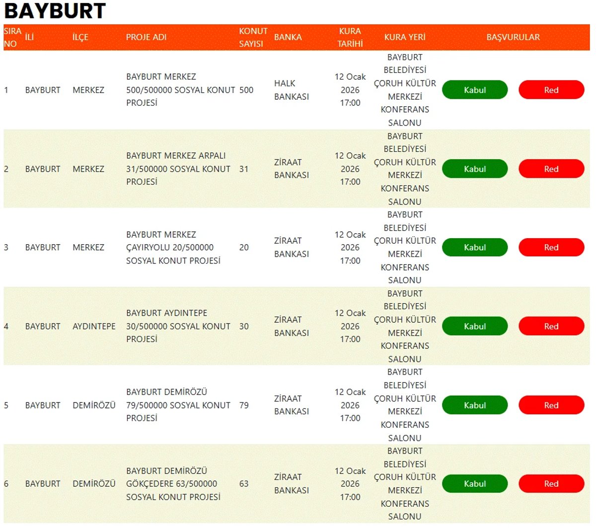 BAYBURT TOKİ KURA ÇEKİLİŞİ NE ZAMAN?