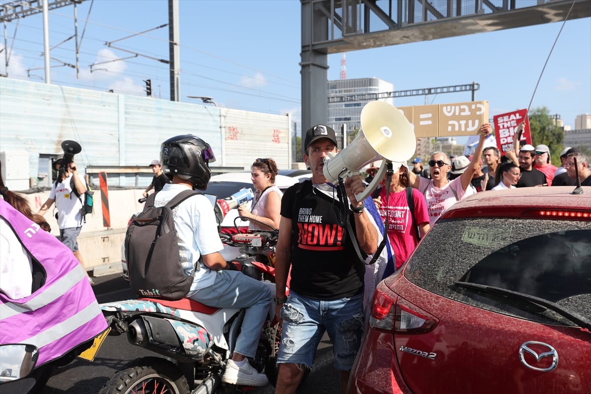 İsrail Güvenlik Kabinesi’nin Gazze kentini işgal kararının ardından ülke genelinde düzenlenen genel grev, Tel Aviv başta olmak üzere birçok şehirde on binlerce kişiyi sokağa döktü. Protestocular derhal ateşkes ve esir takası anlaşması imzalanmasını talep etti.