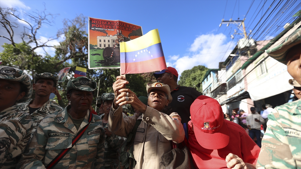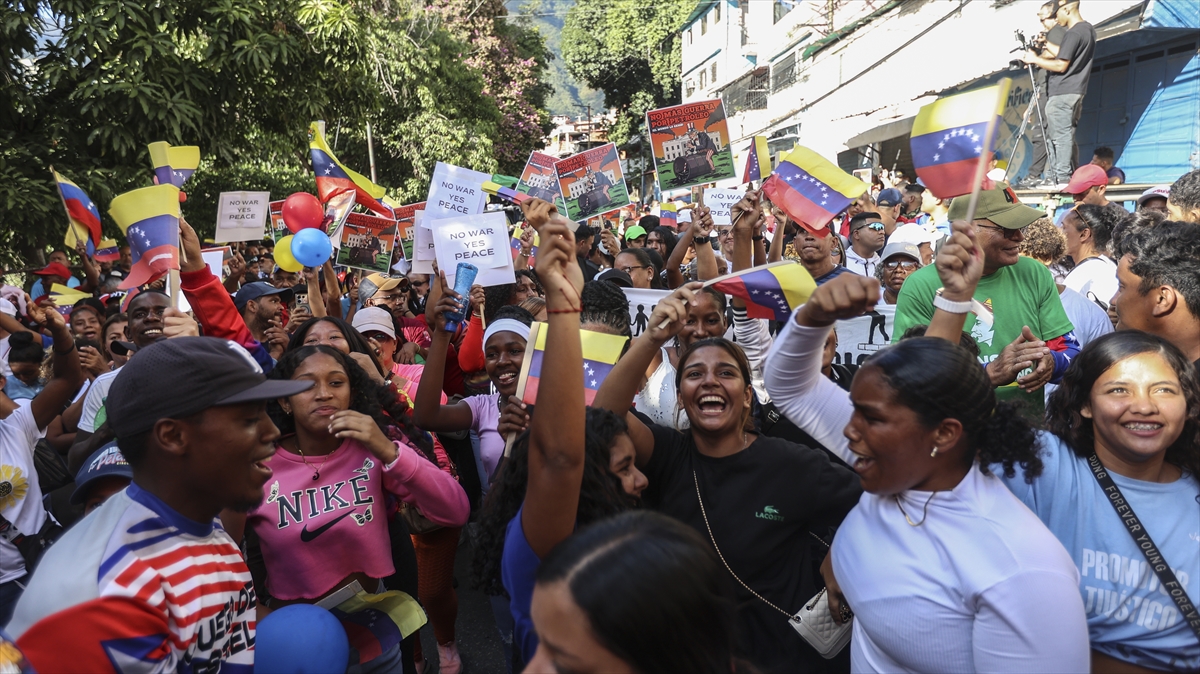 Gösteriye katılan vatandaşlar, Venezuela Devlet Başkanı Nicolas Maduro’ya desteklerini ifade eden sloganlar da attı.