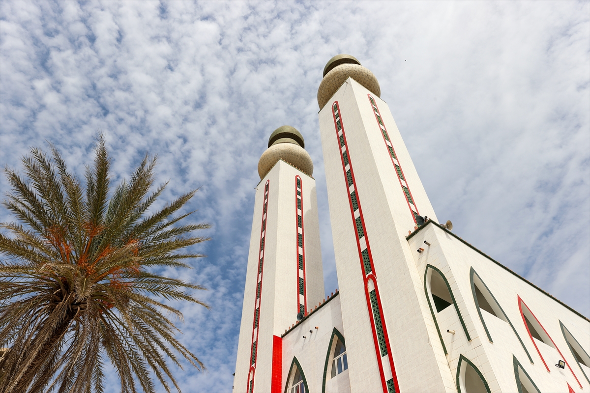 Senegalli ünlü mimar Cheick Ngom'un imzasını taşıyan caminin okyanusla bütünleşen beyaz silüetine, köşeli hatlara sahip 45 metrelik 2 minare eşlik ediyor.