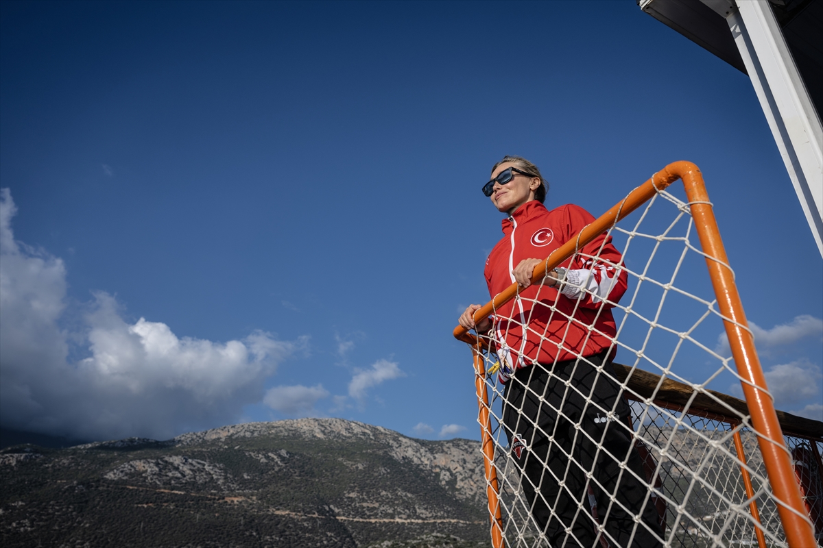 - Rekortmen sporcu, su yüzüne Türk ve Filistin bayraklarıyla çıkarak barış ve Cumhuriyetin 102. yılı mesajı verdi.