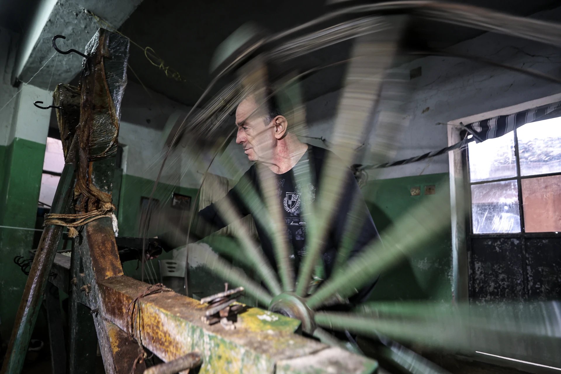 Her gün 700 gram iplik üretebilmek için ipliklerin başında ileri geri koşan usta, mesai bitiminde yaklaşık 20 kilometreyi geride bırakmış oluyor.