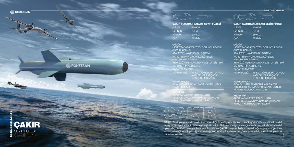 ROKETSAN tarafından geliştirilen ÇAKIR Seyir Füzesi, kara, deniz ve hava platformlarından kullanılabilecek şekilde tasarlanan yeni nesil bir seyir füzesi olarak öne çıkıyor.