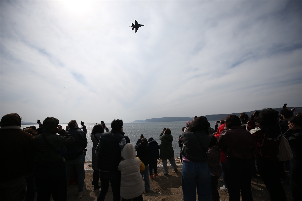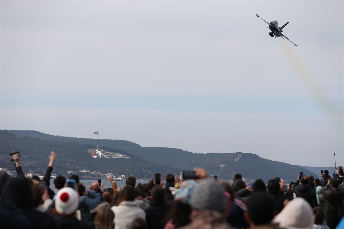 Türk Hava Kuvvetleri akrobasi timi SOLOTÜRK, 18 Mart Şehitleri Anma Günü ve Çanakkale Deniz Zaferi etkinlikleri kapsamında gösteri uçuşu yaptı.