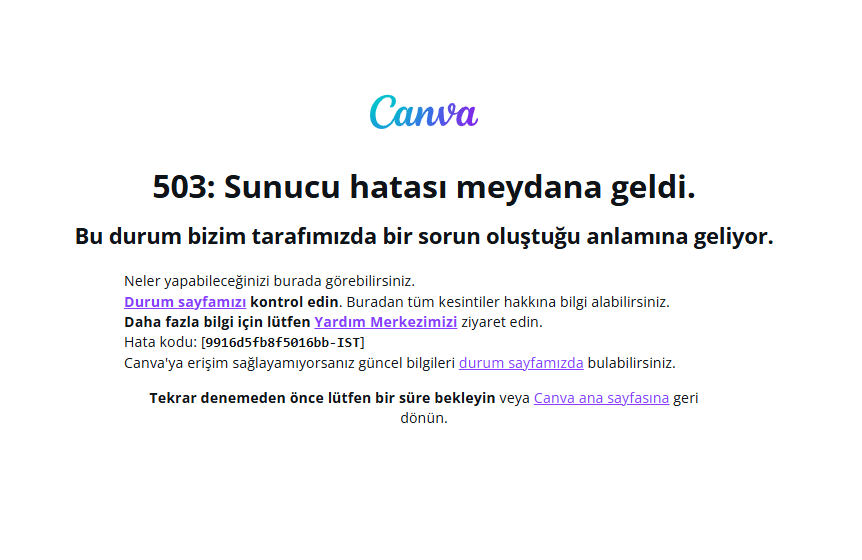Canva tasarım sitesi açıldığında 503 sunucu hatası meydana geldi uyarısı ekranlara geliyor.