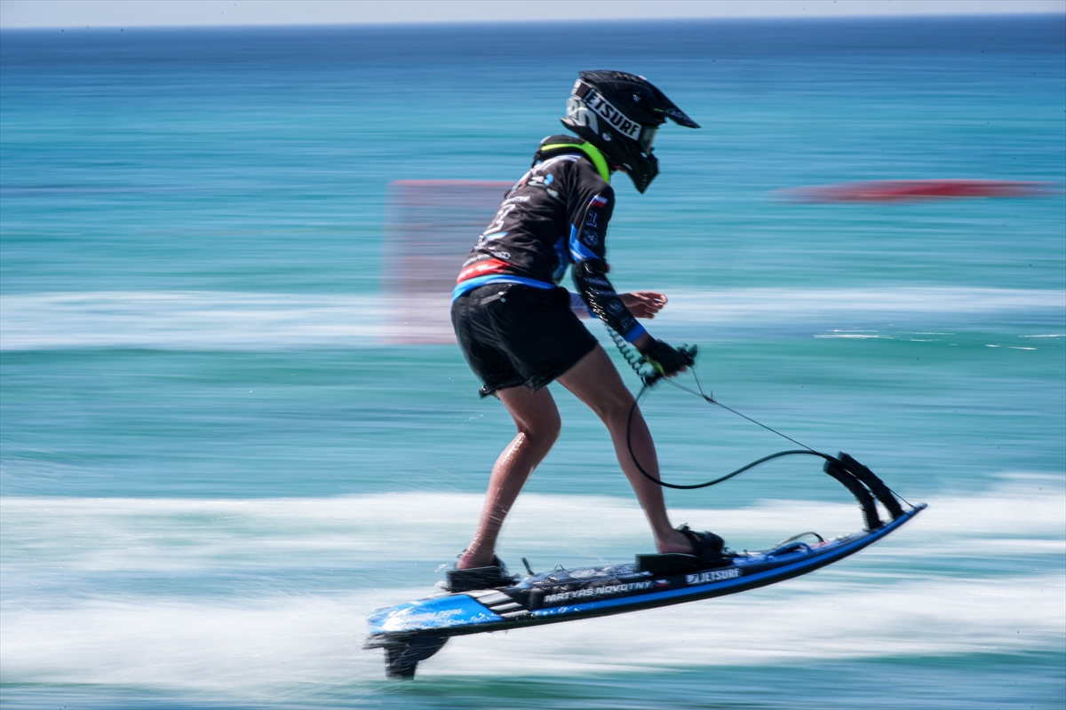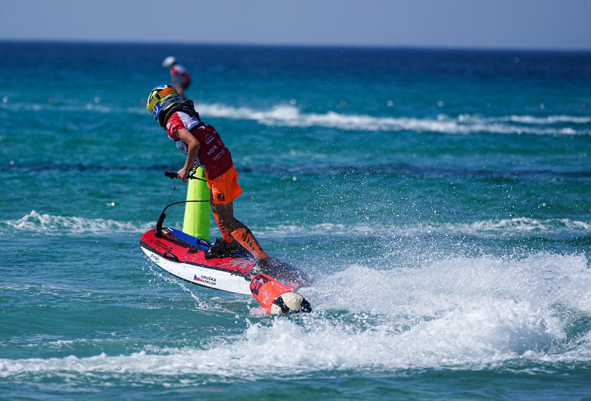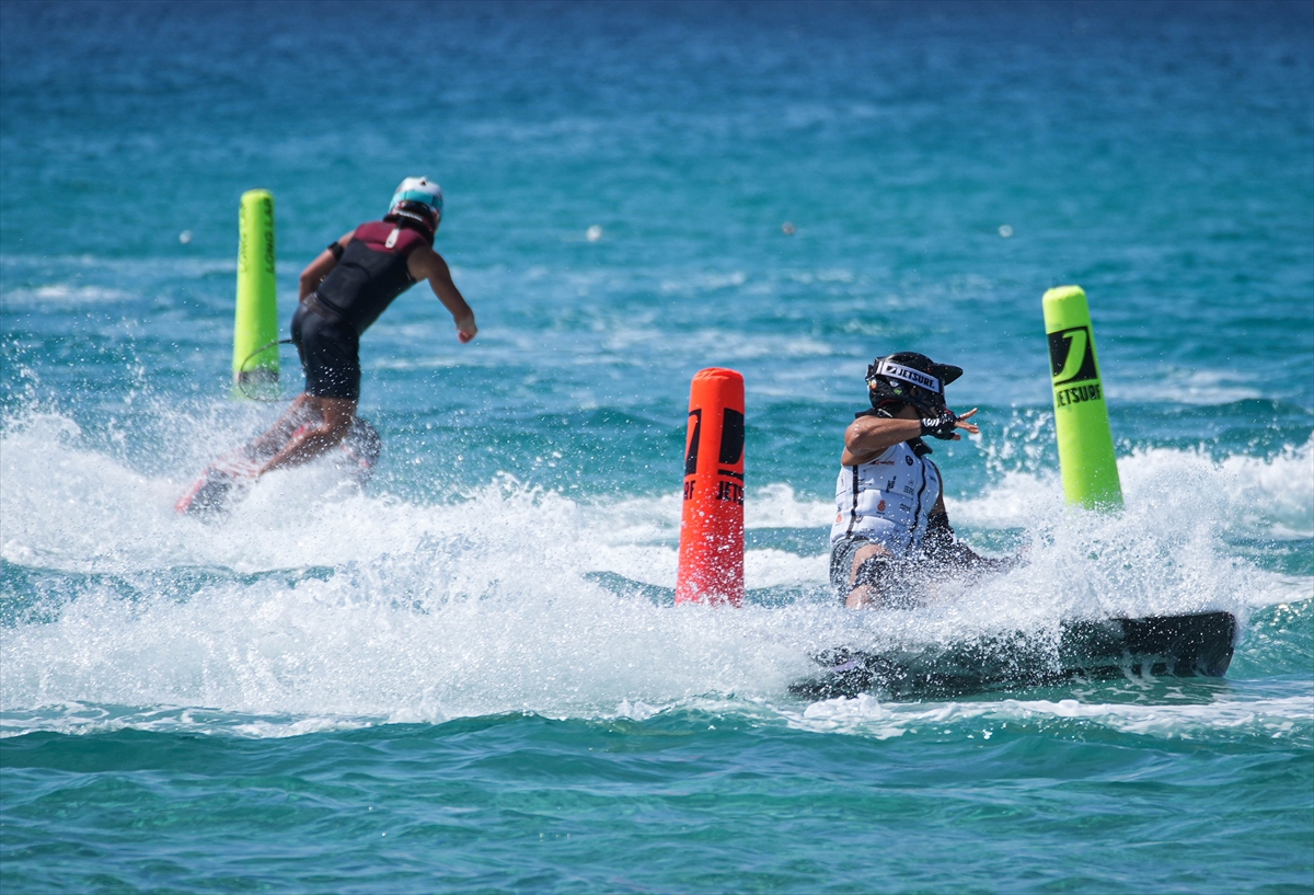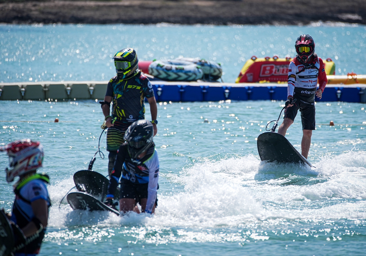 Türkiye'de ilk kez Çeşme'de 16 ülkeden 80 yarışmacının katılımıyla gerçekleştirilecek Dünya Motosurf Şampiyonası'nın hazırlıkları tamamlanırken sporcular, antrenman ve sıralama yarışlarına başladı.
