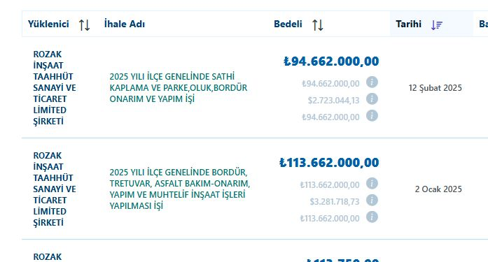 Adem Soytekin’in ifadesinde adı geçen İlhan Akbayır’ın sahibi olduğu Rozak İnşaat’ın, CHP’li belediyelerden ardı ardına milyonluk ihaleler aldığı ortaya çıktı. Ekrem İmamoğlu’nun İstanbul Büyükşehir Belediye Başkanı olmasından önce de Beylikdüzü Belediyesi’nden ihale alan Rozak İnşaat, 2025 yılında yalnızca Çeşme ve Bayrampaşa belediyelerinden toplamda 208 milyon TL’ye yakın iş aldı.