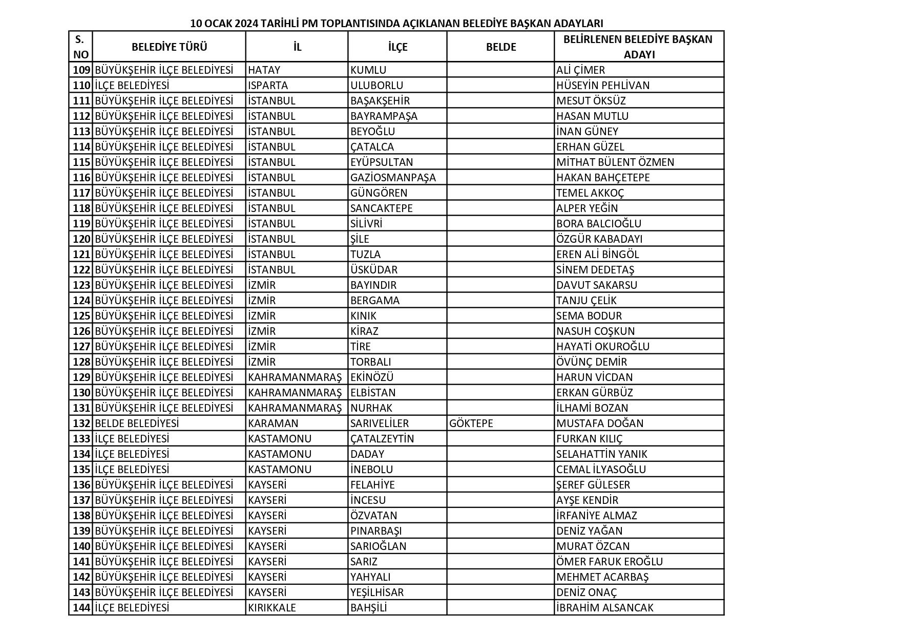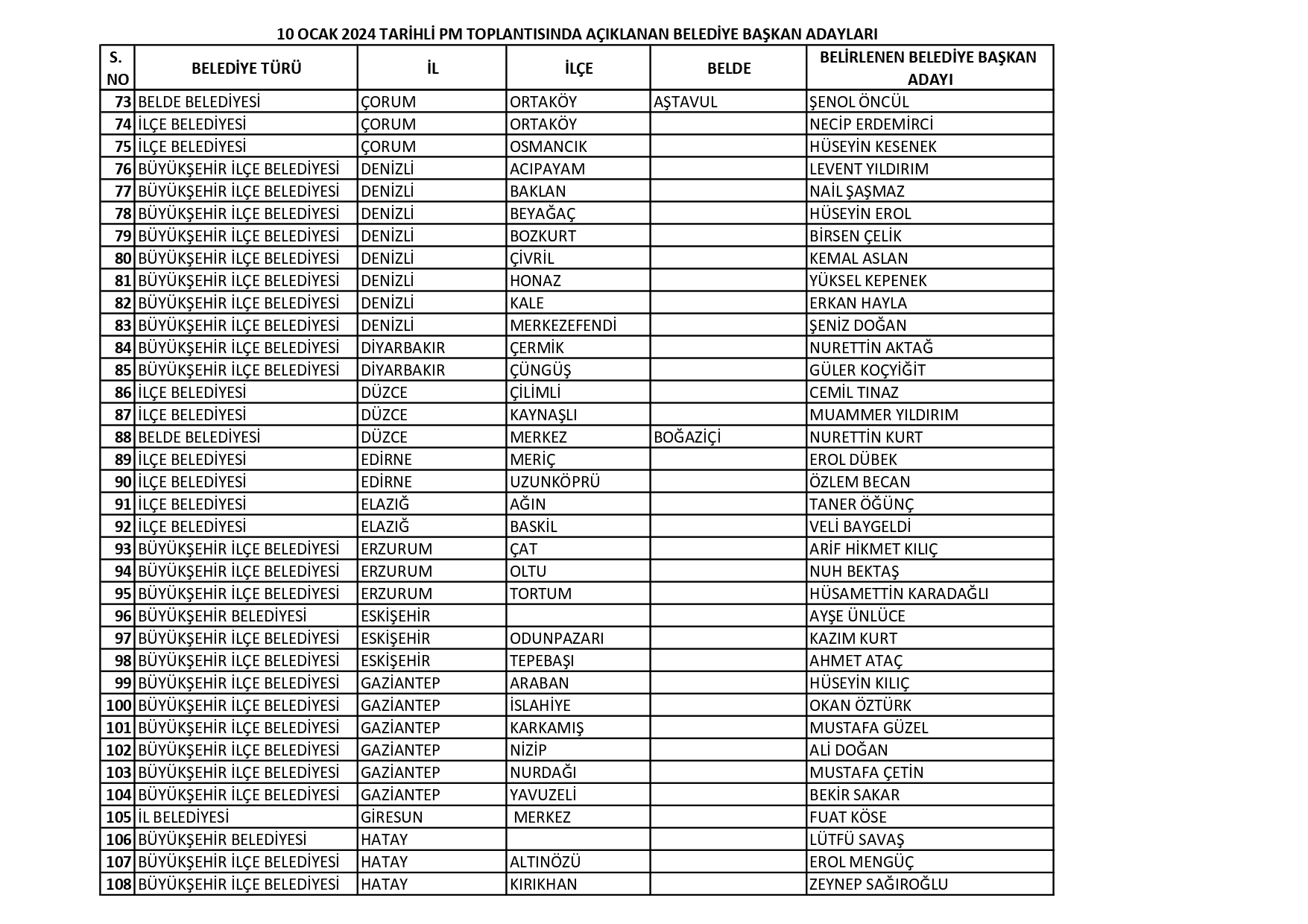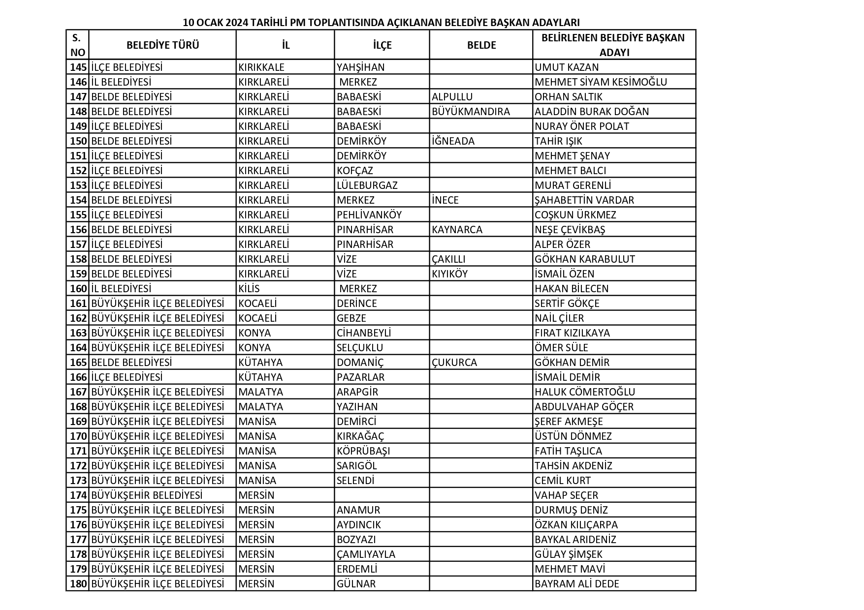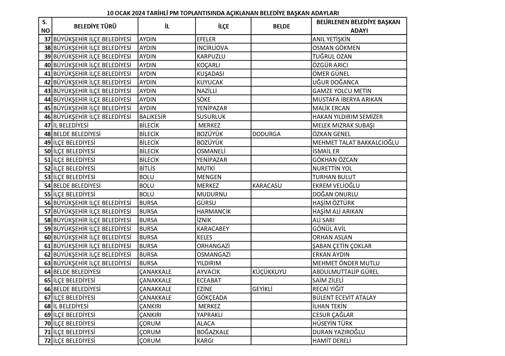 Belediye başkan adaylığı kesinleşen isimlerin tam listesi: