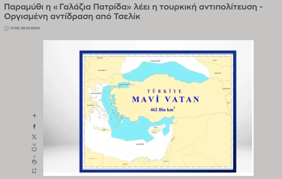 Euronews'un Yunanca servisi, "Eski büyükelçi ve muhalefet milletvekili, Mavi Vatan'a 'masal' dedi" diye yazdı.