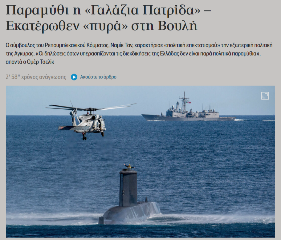 Yunanistan basını, CHP Milletvekili Tan'ın açıklamalarına geniş yer ayırdı. Mavi Vatan'a 'masal' benzetmesinin, Atina'nın tezlerinin savunulması anlamına geldiğine dikkat çekildi.