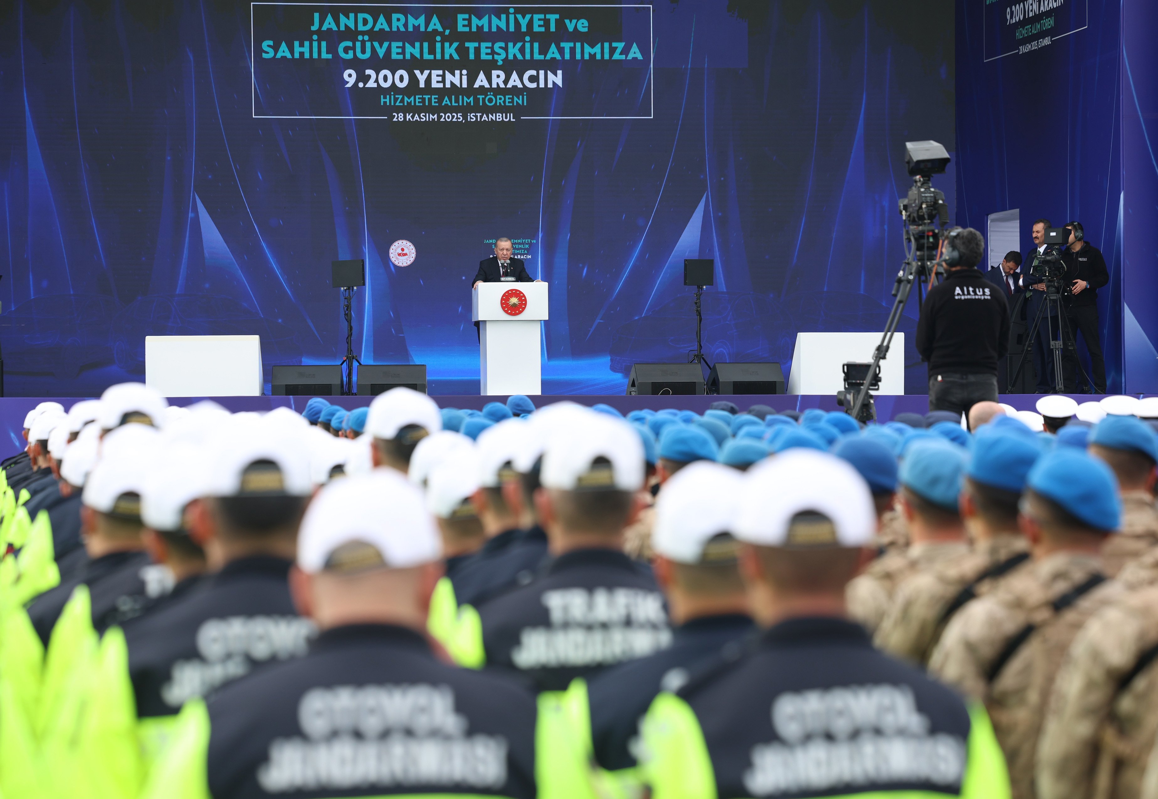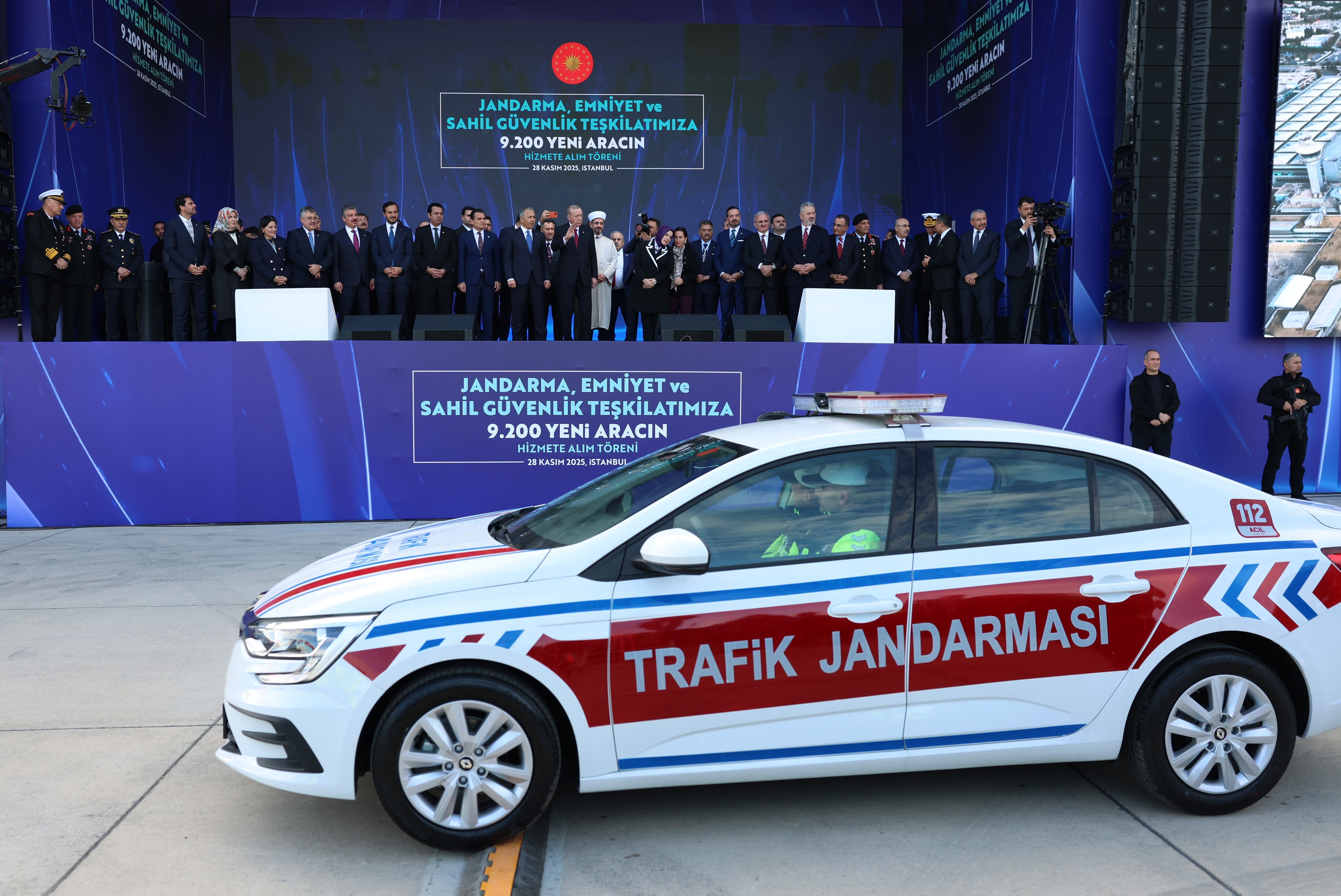 - Cumhurbaşkanı Erdoğan, Emniyet, Jandarma ve Sahil Güvenlik Teşkilatına toplam 9 bin 200 yeni aracın hizmete alındığı törende konuştu. Bu araçlardan 7 bin 80'i Emniyet, 2 bin 70'i Jandarma ve 50'si Sahil Güvenlik tarafından kullanılacak.