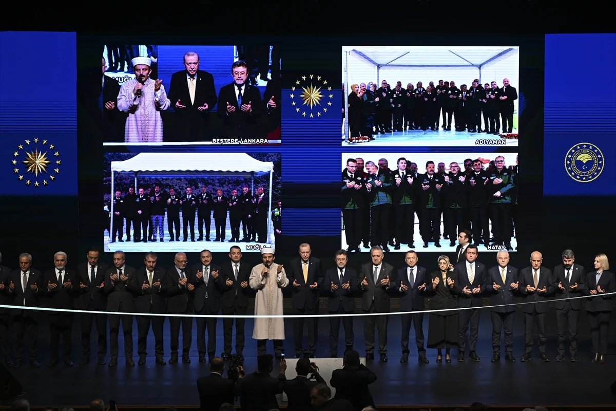 2026 yılına yağış bereketiyle girildiğini ve barajların dolduğunu müjdeleyen Erdoğan, "Bir bardak suda fırtına koparmaya çalışan fırsatçılara rağmen taşı sıkıp suyunu çıkartacağız" mesajını verdi.