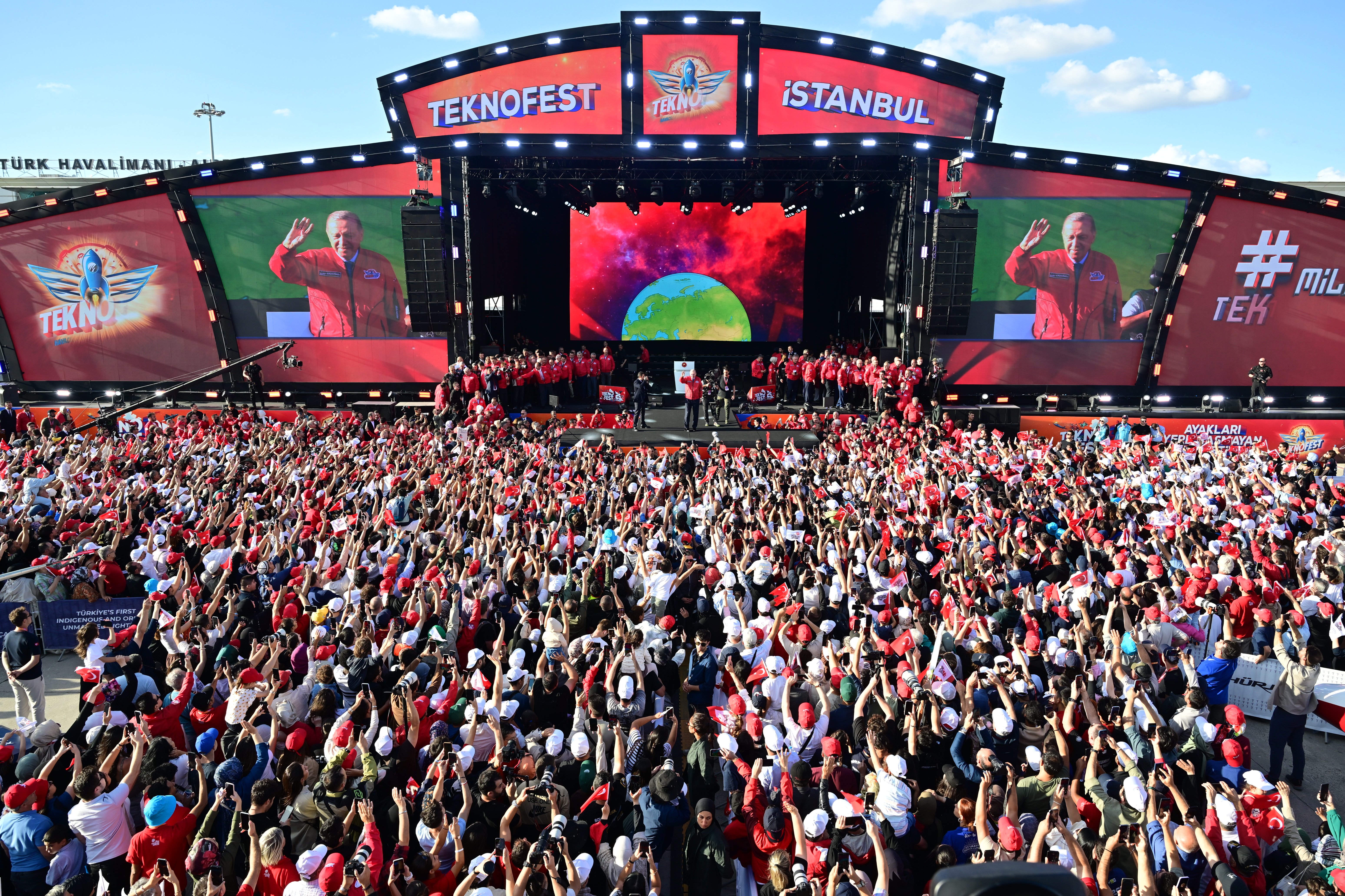 Atatürk Havalimanı’nda gerçekleştirilen ve dünyanın en büyük havacılık, uzay ve teknoloji festivali olarak bilinen TEKNOFEST’in 13’üncüsüne katılan Cumhurbaşkanı Erdoğan, coşkulu kalabalığa hitap etti. Gençlerin teknolojiye olan ilgisinin kendisini umutlandırdığını belirten Erdoğan, TEKNOFEST kuşağını “Türkiye Yüzyılı”nın en kilit aktörü olarak tanımladı.