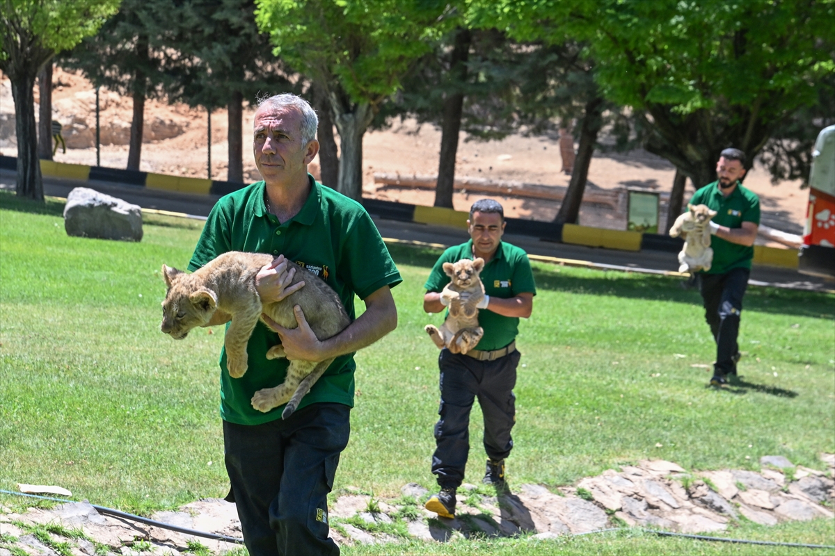 Cumhurbaşkanı Erdoğan'a hediye edilen "Sultan" ve "Nil" adlı aslanların üçüz yavruları Gaziantep'te tanıtıldı.