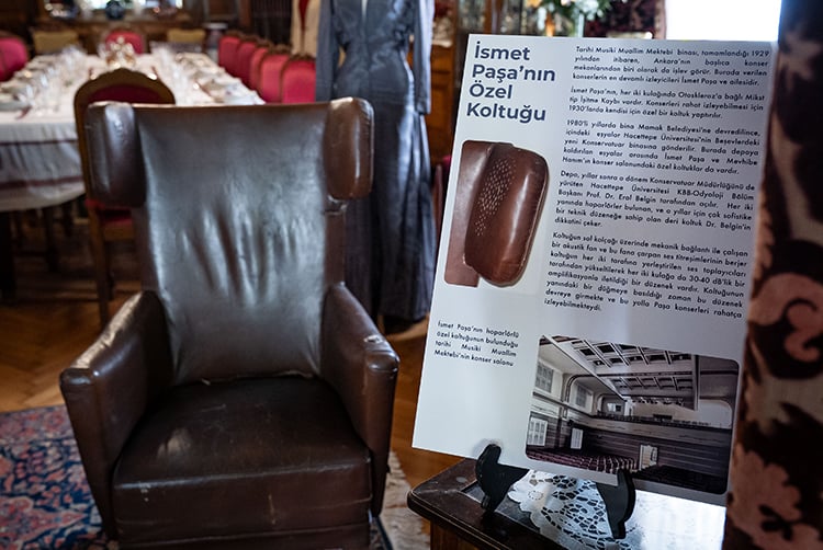 Sergide ayrıca İnönü ailesine ait özel eşyalar da yer alıyor. Bunlar arasında en dikkat çekeni, İsmet ve Mevhibe İnönü’nün 1930’lu yıllarda klasik müzik konserlerinde kullandığı berjer koltuklar oldu.