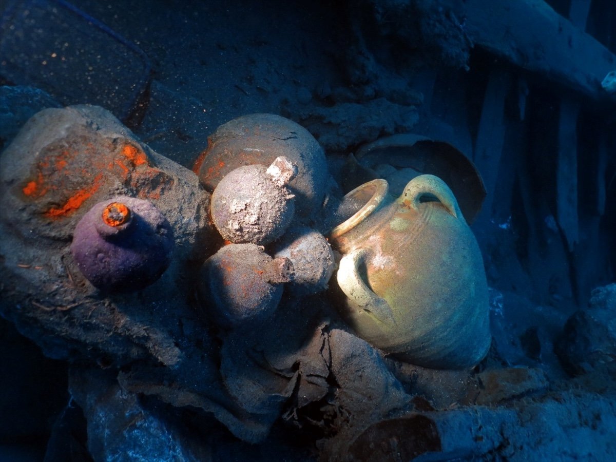 Muğla'nın Datça ilçesi açıklarında yürütülen su altı kazılarında, 17. yüzyıla ait bir Osmanlı gemisi batığından yüzlerce tarihi eser gün yüzüne çıkarıldı.