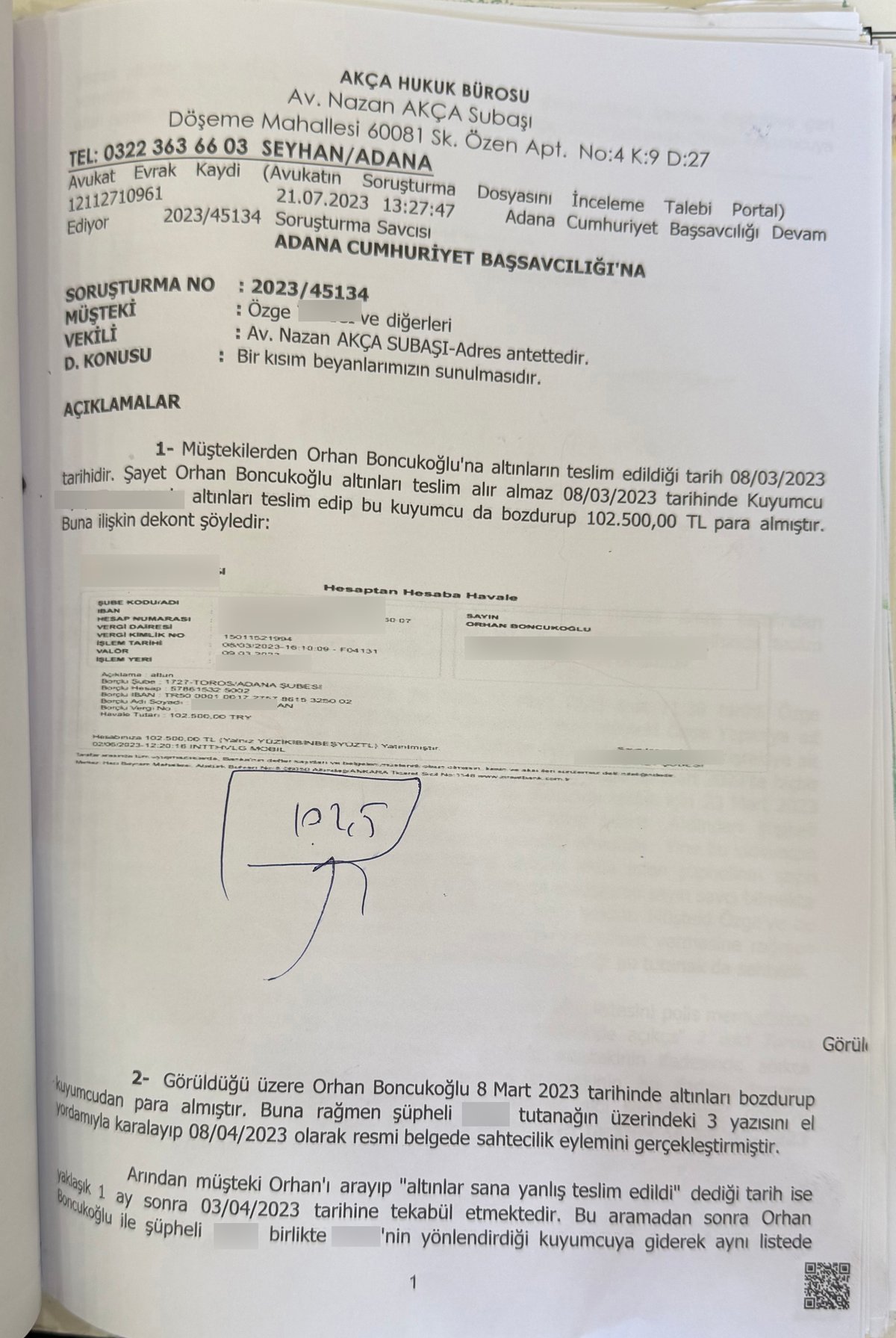 Polis memurunun tutanakları dahi değiştirdiğini anlatan Subaşı, "Görevli polis hakkında soruşturma açılınca tutanakların tarihlerini dahi değiştirmiş. 28 Mart'ta teslim ettiği altınlar için 28 Nisan olarak tarihleri değiştirip kendisini haklı göstermeye çalışmış. Savcılık dosyasında bunların hepsi yer alıyor. Ben sadece kendi müvekkillerim ile ilgili olanları tespit ettim ve milyonluk bir vurgun söz konusu" diye konuştu.