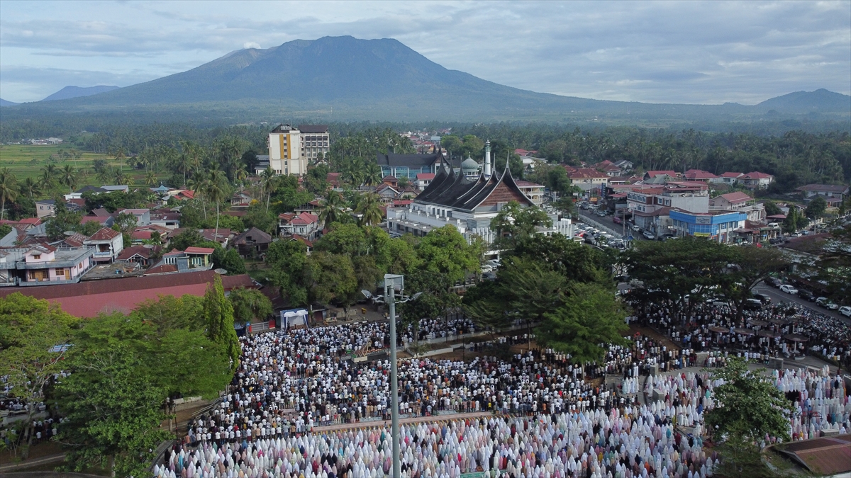 Endonezya'nın Batı Sumatra eyaletinin Tanah Datar bölgesinde Müslümanlar, Kurban Bayramı namazı kıldı.