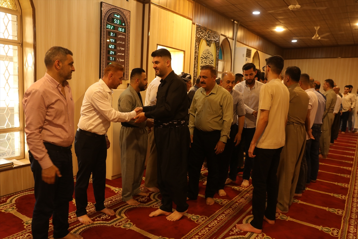 Irak'ın Süleymaniye kentindeki vatandaşlar Kurban Bayramı namazını Hacı Hasan Loka Cami'nde kıldı. Namazının ardından cemaat birbiriyle bayramlaştı.