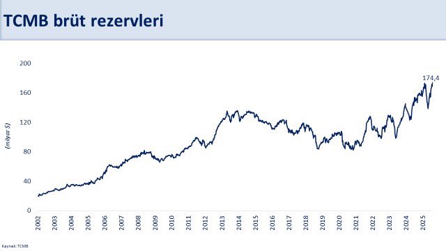 - TCMB'nin brüt rezervleri 174,4 milyar dolarla tarihi zirvesine ulaştı.