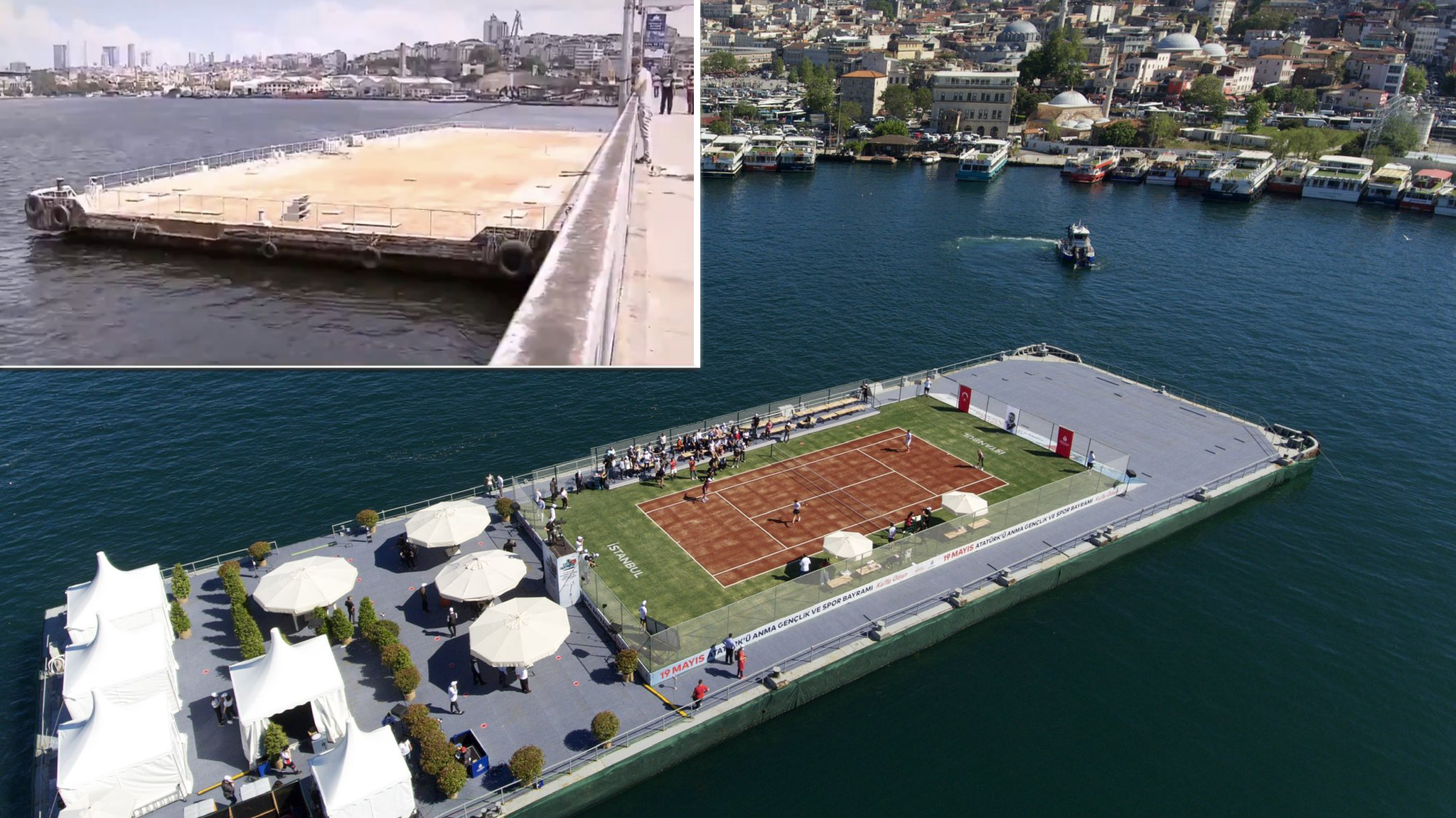 İstanbul'un tarihi ve sembolik noktalarından biri olan Haliç'te, bir zamanlar üzerinde bir tenis kortunun bulunduğu bir platform yer alıyordu.