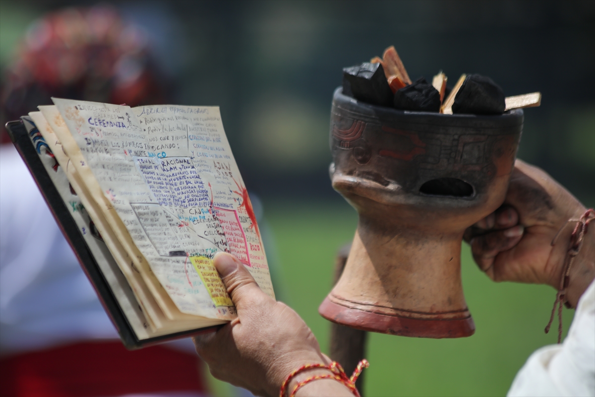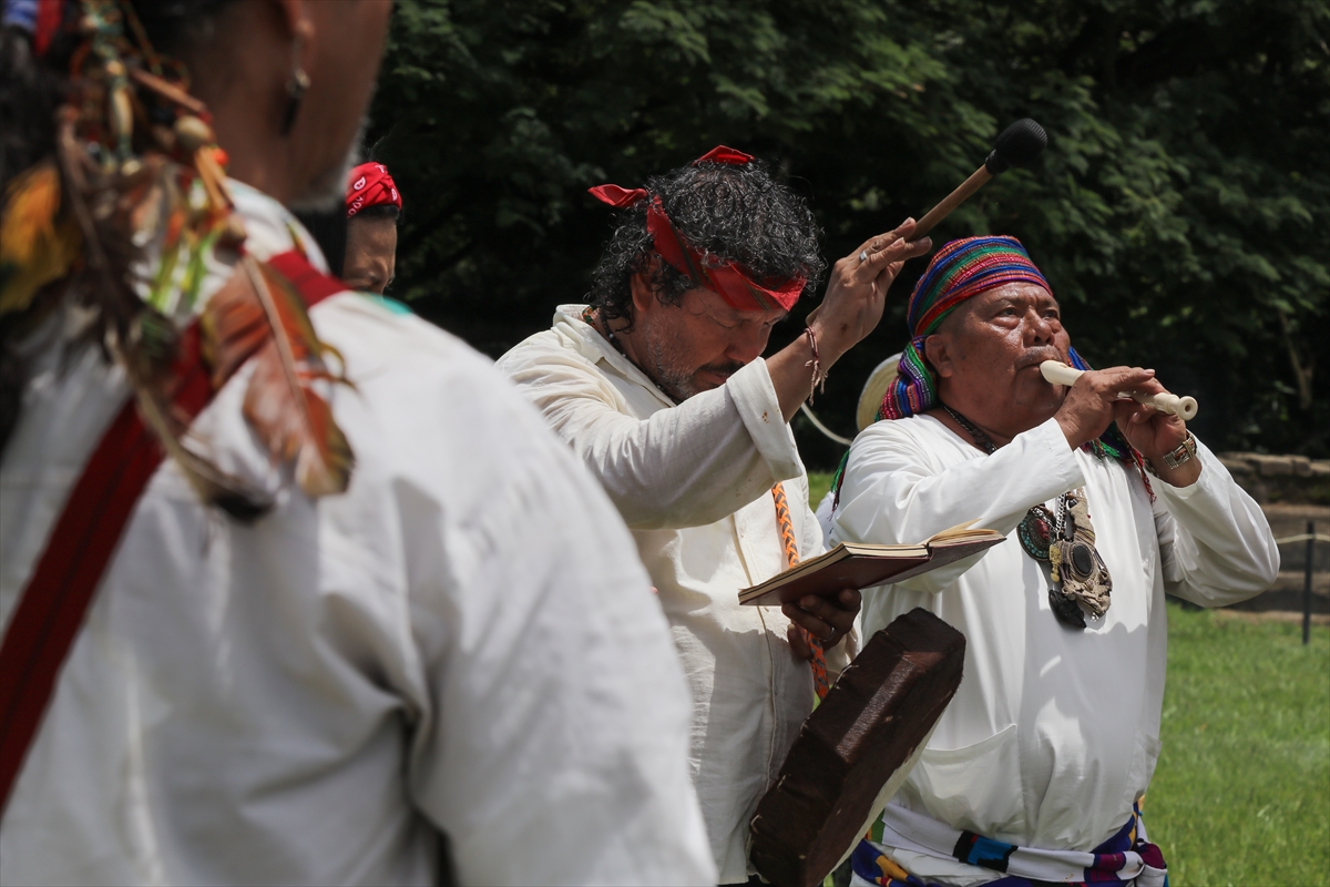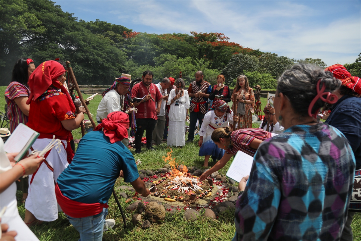 El Salvador'un La Libertad kentinde bulunan San Andres Arkeoloji Parkı'nda, bölge sakinleri ve yerli liderler tarafından yaz gündönümü karşılama ritüeli çeşitli etkinliklerle kutlandı.